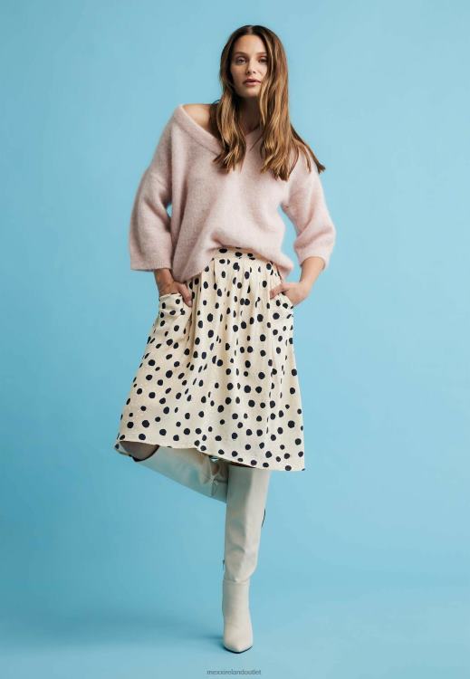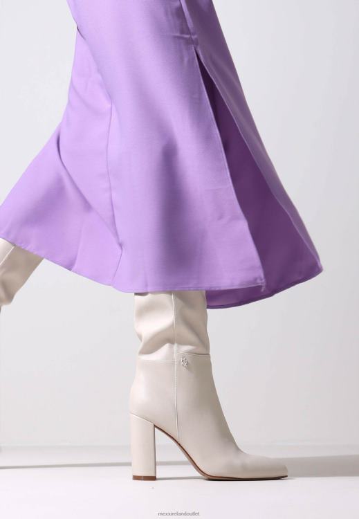 Off-white tall women's boot from Mexx. Pointed toe and a half zipper. High block heel. A red X on the sole as a signature of the love story how Mexx was born. It started with a kiss. We advise you to regularly spray the boots against water and dirt.