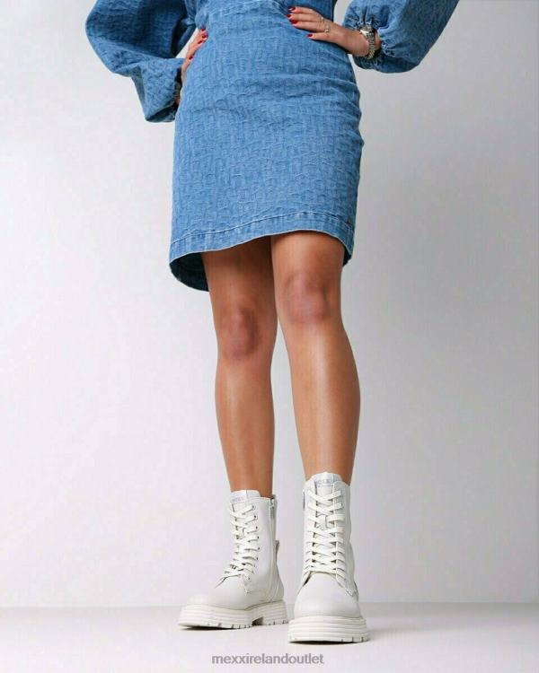 Off-white ankle boots for women from Mexx. The boot has a zipper and laces. Made of imitation leather. Small loop on the back. Subtle Mexx logo on the back. Easy to combine. Spray the booties regularly against water and dirt.